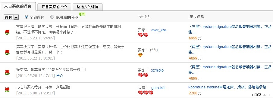 更多淘宝交易记录及网友评价请见: