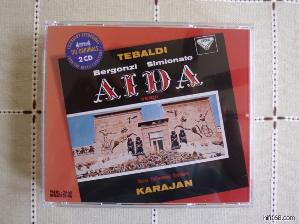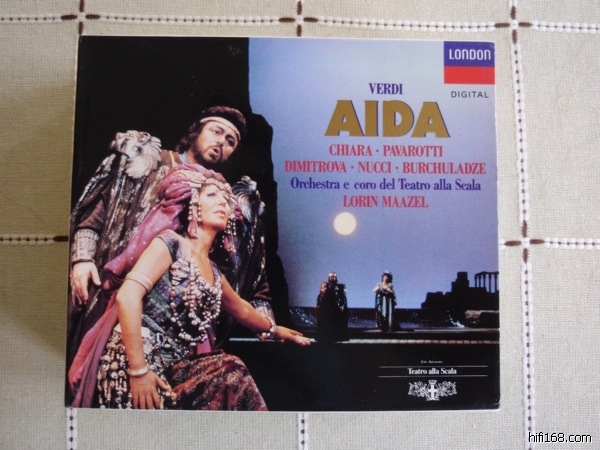 但是90年代后重新数码化的版本(如图)是有问题的。这一版《阿依达》比初版的音量会大而亮,但是在最高潮的凯旋合唱,高频区明显饱和失真。事实上,同期重新数字化的同一“RCA Opera Treasure”系列的歌剧都把音量调大了,但是因此失真饱和的,似乎就是这版《阿依达》。