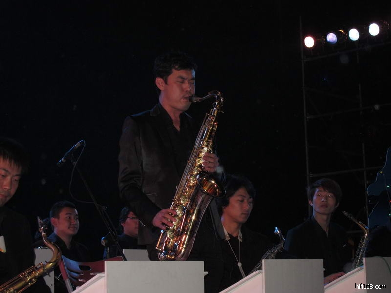 上图的MM演唱非常投入,手舞足蹈的,下面这些乐手也一样卖力: