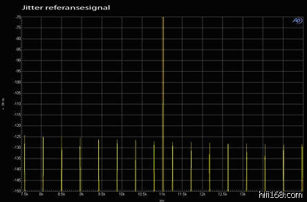 我们先来看看,AP给的一个理论上完美(jitter)的参考图表,极低的本底噪音(小于-150dB),峰值也小于-120dB,同时,也没有出现任何多余的(非对称)抖动,这样的jitter在听感上基本不会出任何问题。
