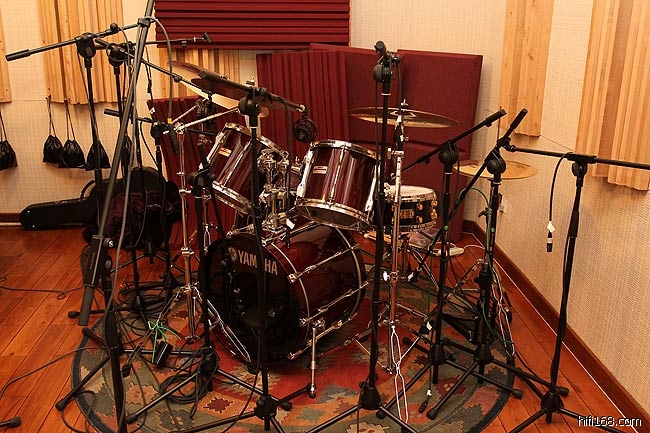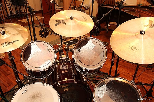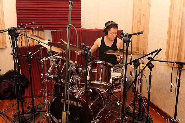 鼓也是录音室必备器材,但几千元可以一套鼓,几万元也可以一套鼓,雨林录音室的这套架子鼓(爵士鼓)总值超过6万,属于雅马哈的录音室参考系列。