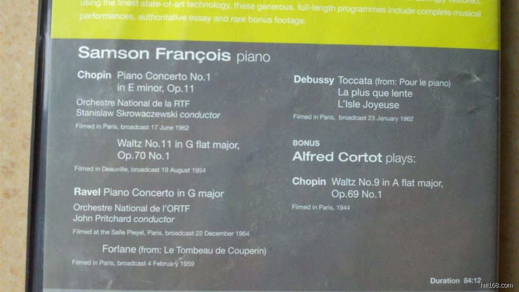 1.弗朗索瓦演奏肖邦(第一)、拉威尔钢协和德彪西独奏作品(同碟附赠科尔托演奏肖邦圆舞曲),少纹,25