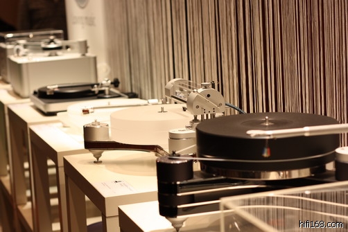 今年展会用CD示范的比较多,黑胶和数码存储就少些了.BRINKMANN的最新黑胶系统,用上了EMT定制的唱头,可能由于搭配的是德国物理的音响,个人不是喜欢次类型的音箱的声底,所以BRINKMANN系统的表现不能作准.
