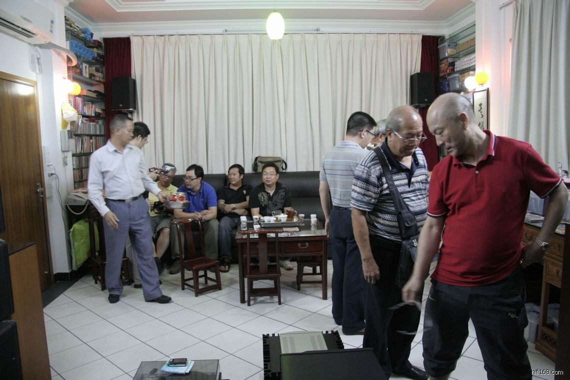 第三站是到做音箱都可以出名的牛人礼哥的府弟,礼哥的巨无霸组合本人感受最多,经过这几个月的不断改进调试,现在的改进是有目共睹,这么多嗽叭同时发声也非常协调,能做到宽松自然实在不简单。现在还多一对B&W DM3000成品名箱作对比,经过多次的反复比较,B&W DM3000和巨无霸音箱各有千秋,DM3000也不能立即取代巨无霸音箱的地位。大家都对礼哥的巨无霸感到惊讶,万元不到的成本,说有这样的音效实属难得。所以DIY的产品是经过不断的磨练改进才能达到好听性的产品,享受DIY的过程,才感觉DIY的乐趣。当天一众番禺顺德金耳朵发烧友对礼哥的巨无霞也作出肯定,对礼哥组合有这样的表现加以赞赏,也给了一些宝贵的经验给礼哥,希望礼哥的巨无霞有更进一步的表现。