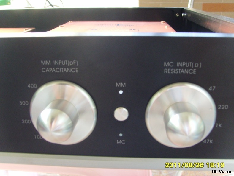 2、MC输入阻抗设有47-47K选择,MM输入设有100—400PF选择,可以匹配市面上大部分的唱头;