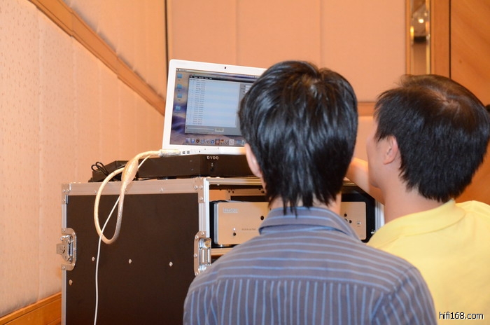 JBL的旗舰级DD66000型号的喇叭,当晚烧友都领略了它的震撼。低音喇叭18寸,音展才两天,连白天鹅天花板上的灰都震下不少。力高公司都擦了两次了。经理笑言,这是测试装修质量的神物。