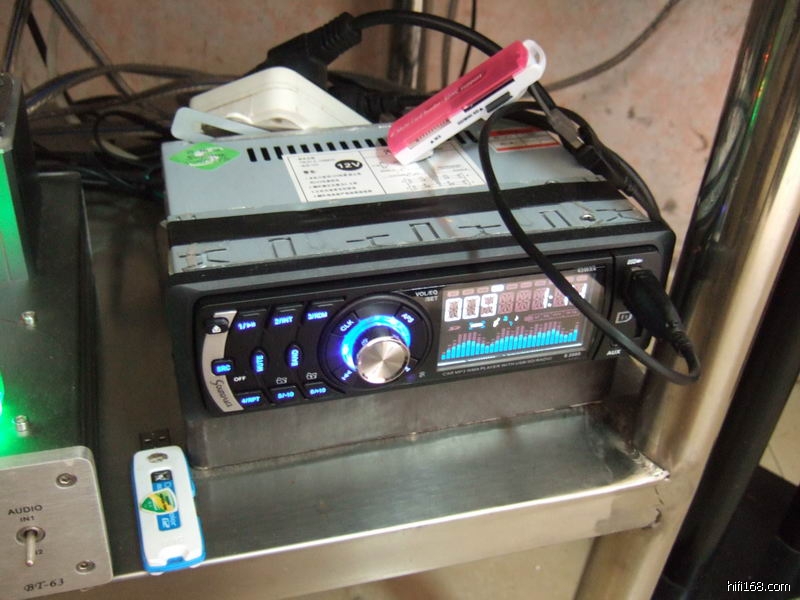 自去年民工朋友发现数字音乐播放器是个好东西后,基本放弃了CD,绝大部分的音乐都是通过网上下载,再通过下图这个网上花100多买回来的汽车用流媒体数字播放器来做音源,这个播放器据说还支持多声道的: