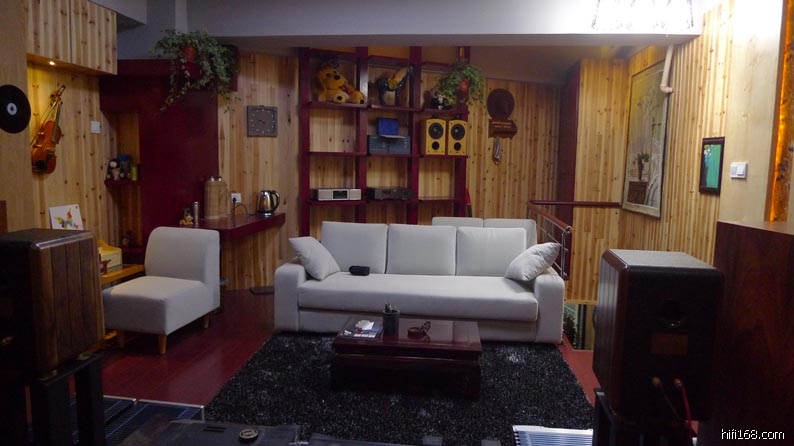 试音室风格以古朴雅致格调为主,采用家庭装饰手法,大量采用木材,力求营造个温馨环境和家的感觉,让人能静静座下来欣赏音乐。