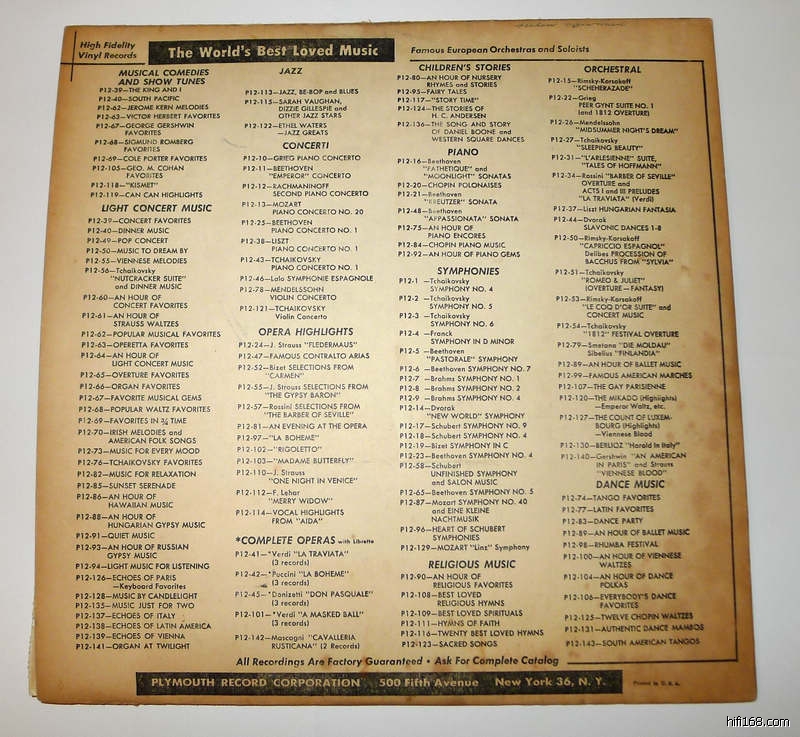 但它的内容介绍的确是简单的让我有些失望:很多乐曲的指挥家都没有标出名字,包括很多演奏家都没有提到名字。我感觉他在那个时代就是把自己摆放在一个音乐普及介绍的位置上,他的目录就叫:《THE WORLD'S BEST LOVED MUSIC》"世界上最可爱的音乐"。看来针对初级者。但实听起来演绎和声效并不差。从这个牌子,我真真体会到早期LP的文化味道。先从我唯一一张这个牌子的jazz放起吧。听爵士的人一定熟悉这张唱片的内容:那可都是相当的精彩。。。。。。。