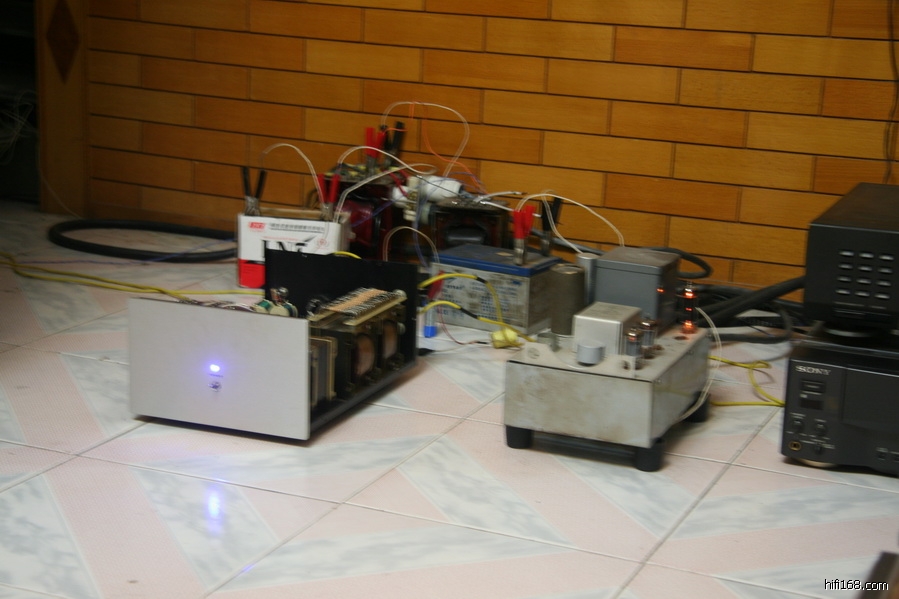 玩了这么久音响,每件器材都有自己的汗水后,发觉音响最终要玩和改善的就是电源方面,胆机前级胆12AU7和CD 集成原件全用电池供电,感觉背景宁静,细致,顺滑,条理清晰。