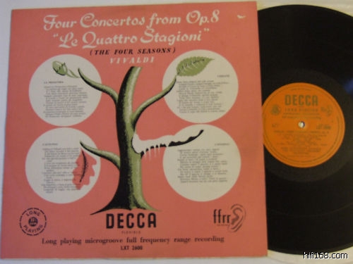 “对于那些名声很大,货品玲琅满目,装修豪华的店,我是从来不光顾的.“ 您不是说在金融大夏二楼,花名叫 ” 十倍价 “ 那家吧?可能李加成才买得起咯!呵呵 在那里没见过低过1W港币一张碟的,我问他为何1K、几佰的碟,你卖这么贵?他说:“我的客户是香港各大银行的老板和往半山腰的”。 我答他:“我不是这类的” 哈哈…..走人。“我更喜欢淘碟,在垃圾中捡宝,事实上这样的机会在香港还是很多的.我也纳闷,怎么香港还有那么多古典头版黑胶,不是外国进来的二手货,是当地用家的二手货品,或者店铺销售的尾货,看价格标签就知道了。” 这就要视什么演、录,想买的碟是什么版次和品相了。CD还可以这样来搞,如是LP的话就 “ 死定 ” ,废品率可能达到95%!“年前一个音乐爱好者的儿子,卖了他老爸的收藏,大概有2000张,全部是头版,少许单声道.被三个商家收了货品,.我有机会搞了50多张,包含大DECCA ED1,红标或者贴标大荷花,阴影狗等,均价在200-300元.后来又去买了几次,店家就是一口价,你自己挑,100-200元,到了最后是80-100元,不过这样的机会不多.” 现时想有这支歌仔唱,难咯!机会小之又小。“其中DECCA那张四季王,之前收的是橘标单声道,这次又碰到了ED1版,300港币,又怎么有不收多一张的道理?” 请上图,不知您说那一张?