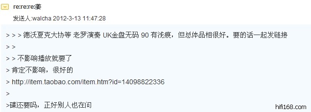 1、walcha的卖贴[url=http://bbs.hifi168.com/showtopic-202234-1.aspx]http://bbs.hifi168.com/showtopic-202234-1.aspx[/url],大家留意,此人将老罗这张碟的图片已编辑掉。