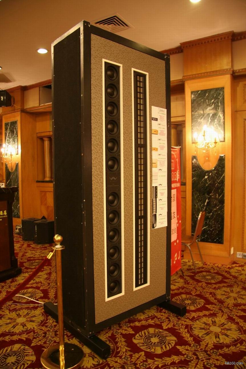这全套美国Wisdom 扬声器系统应用了平面电磁振膜技术,箱体由L75和L150所组成声场宏大,动态凌厉,但这么大的一个展厅加上几百人在场,有点对它不公平。