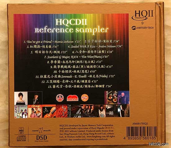 现在试听的这张的HQCD II格式的精选样板碟,里面收录了多首经典音乐,可以让发烧友领略HQCD II的靓声效果。