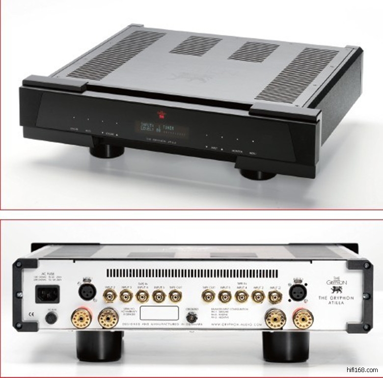 Gryphon推出的Atilla合并式扩大机也被发烧友口口相传,它的外形设计独特机身披看Gryphon传统典雅的钢琴面黑色外形,而机箱面板上同样刻有一只厂方标志一红色莺狮·相对于其他家族成员,Atilla算是一台体型较为细小的扩大机、甚至乎身价也是最易被广大发烧友们所接受·然而在其结实的铝合金机箱内收藏的内容却不容忽视。Atilla虽是家族中最相宜的合并式扩大机,但延续了Gryphon传统采用无负反馈线路设计·就连控音器亦是Gryphon近年偏爱使用的新型微处理被动音量控制,他认为这是目前世界上最佳的音量控制晶片。