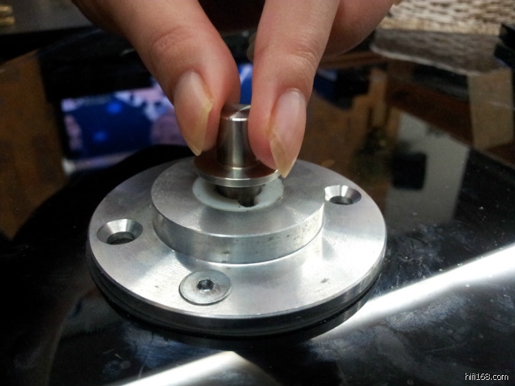 “空军一号”的转盘和一体机参考唱盘的转盘是一样的,不同的是一体机参考唱盘的马达安装在转盘底座内。