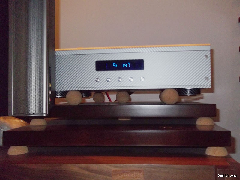 昨天,偶然看了一眼器材架,突然发现两层VTB-1垫板的上层垫板,与转盘间的5个水松半球,逐渐被压致变形后,其高度已经与转盘底脚的高度一致,部分底脚似乎与上层 VTB-1垫板相接触了,抱着尝试的心态,把四个水松半球放到转盘的底脚下面,效果自然不满意.索性再拿出另一套5个水松半球,与原先的5个水松半球平面相对的叠加,形成5个完整的水松球,以5点法放到转盘下面,避开底脚,开声......在不影响中/高频