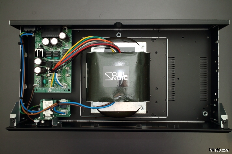 Soul Note的SD2.0采用了分体式的机箱设计,把电源和数模部分完全独立分离,通过机背后排线插口连线至解码向解码输送电能。其好处在于隔绝电磁干扰,以及变压器震动带来的声音劣化。这种设计一般来说只有部分顶级解码器才采用到,没有想到中价位的SD2.0也采用如此极致的做法。电源部分的用料也是十分惊人,打开电源机箱见到了一只硕大的R型变压器,足足占据了机箱三分一位置,容量则达到400VA之大,其实一个DAC的用电量并不大,400VA的供应可以说是余量充足,让整机的稳定性也更高。