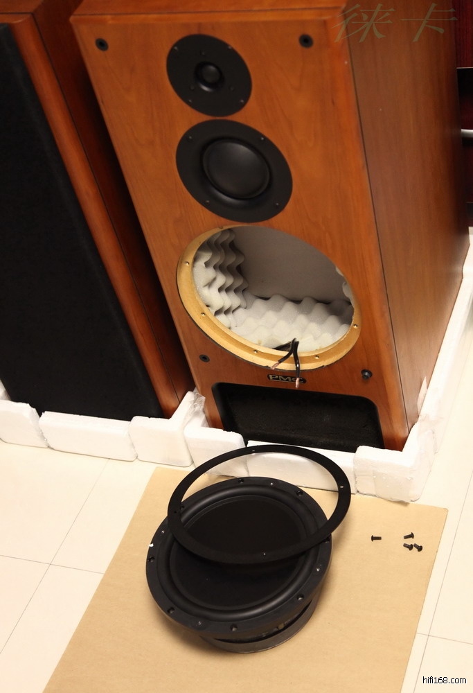 上图为实拆原装 pmc-ob1i 中音,箱内安装原厂一体注塑圆锥形后腔,并装吸音海棉