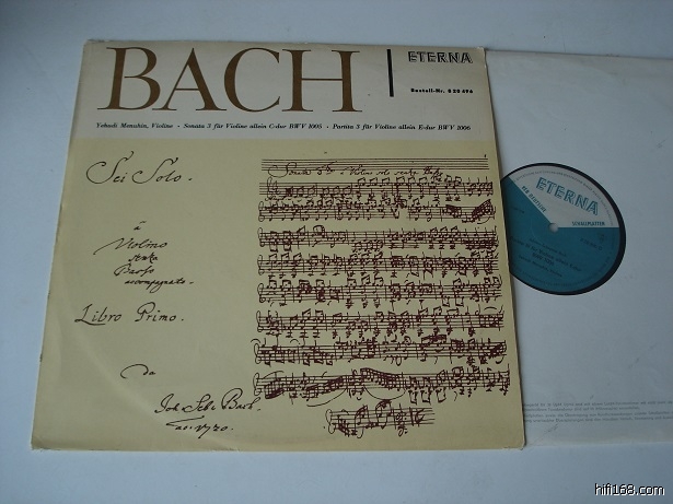 [size=5]908)BACH:小提琴奏鸣曲和组曲3,梅纽音演奏。德国ETERNA唱片公司厚盘第一版。封套顶部有点使用磨损,唱片NM。[/size]