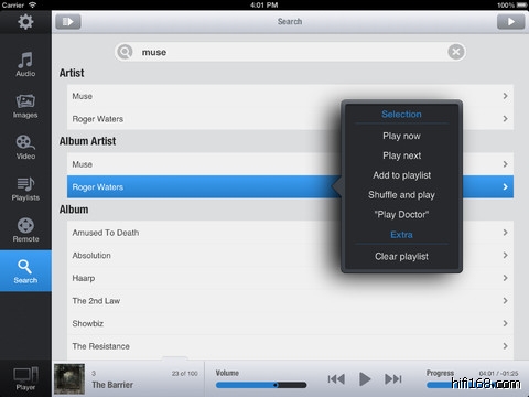 几年前,squeezebox就已经提供了ipad客户端软件,让你可以在ipad上选取你电脑硬盘上的音乐文件,然后播放到DAC,明白了?