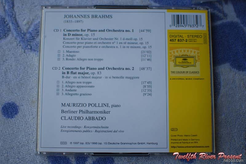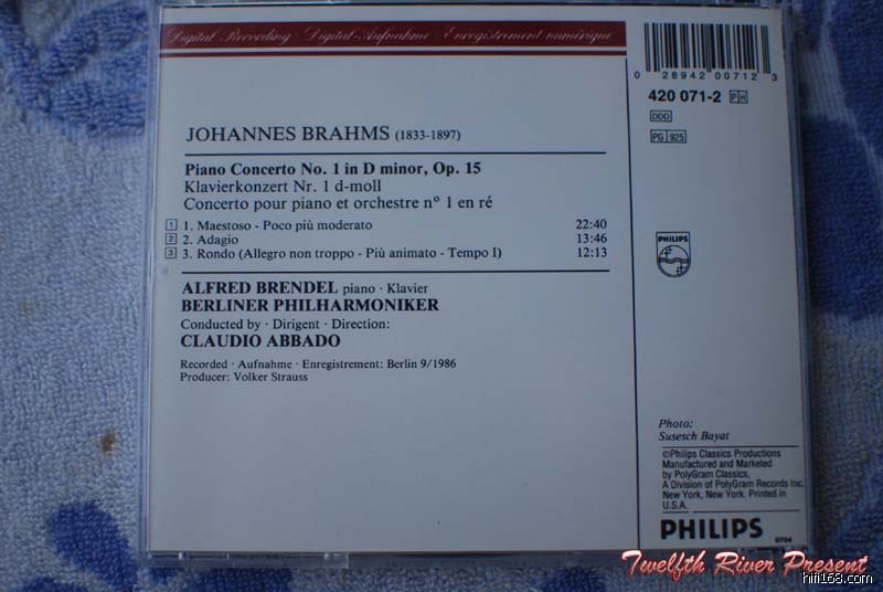 说说布拉姆斯钢协。其实在芸芸众多钢协当中,我很少留意布氏的,虽然在耳濡目染下看各位大侠的帖子不少都说布氏的钢协是非常优秀动听,尤其是第二号钢协,但我还是提不起劲去听,吉列尔斯与约胡的名版也早早贱价出调;就算是后来听阿巴多