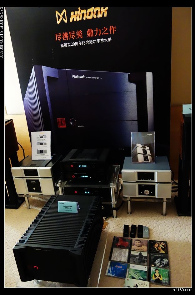 万均音响应该是一个规模不大的厂家,手工制作全频音箱,落地箱展会价8800元,声音比较通透,个人认为还是对得起价格的。巴鲁007比较热的机器,此次携b&w802开声,用自己制作的EST前后分体i胆机推动,老实说,声音除了直白还真没听出胆味。新德克带来了20周年纪念款前后级,第一次见到实物,只能说确实块头很大,想起去年换功放时曾经想实际听一下致电厂家说无法试听,只能先下定金等成品才能听,巨汗。此次终于见到庐山真面目,巨大的身躯真是威武,家中也真放不下。比较新奇的是天逸厂家的电子三分频前后级功放。