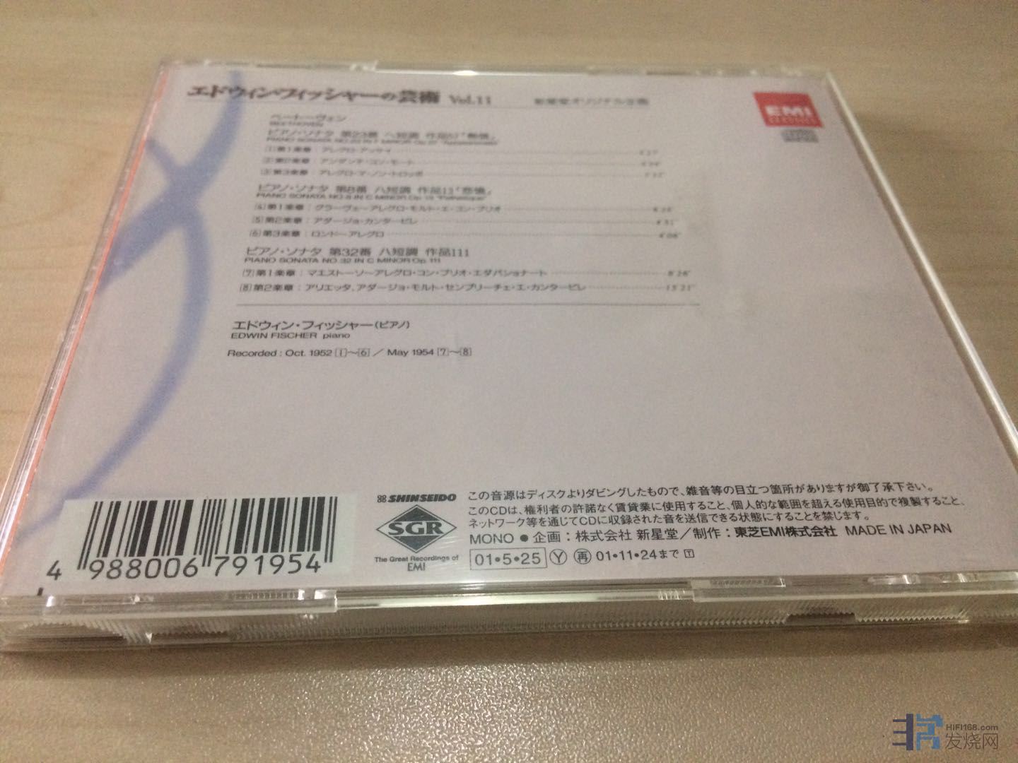 212.EMI,贝多芬钢奏,EDWIN FISCHER, 日版,有IFPI,近新,80元。(已出)