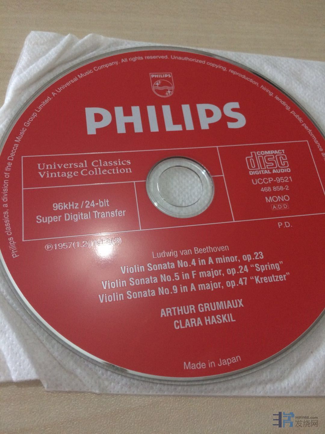 215.PH,贝多芬小提琴奏鸣曲第4,5,9,HASKIL/GRUMIAUX, 96khz/24bit的纸盒限量版,近新,180元。