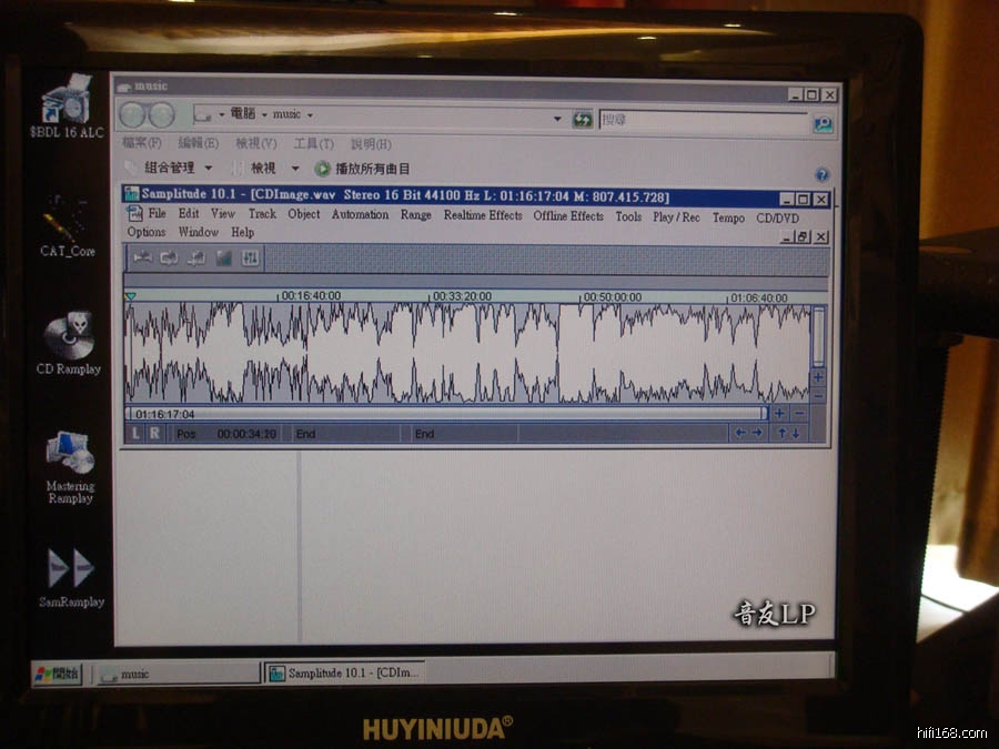 这台电脑播放器是台湾一群热心的烧友提供的配置, 用的播放软件是自己开发设计的 .播的音频文件效果真的不错,和我现在玩的景丰音频播放器相比较这台电脑细节多好些,比起张兄的贵米黑胶还是有一些差距的.当然,不论是用电脑还是音频播放器播音频文件数据,多数是自己抓轨或者网上下载的复制音频,如果能有原装正版的音频文件,有可能会更加好声.总之,玩得开心是最重要的.