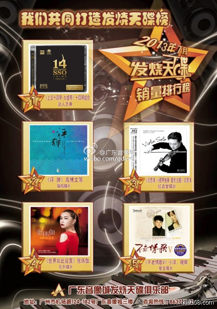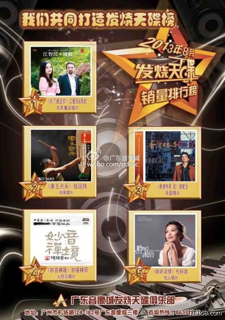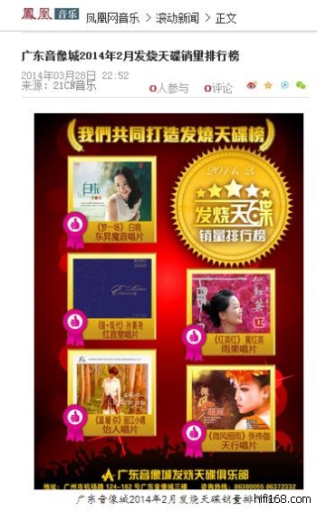2014广州影音展 广东音像城2014年2月发烧天碟销量排行榜(媒体播报)