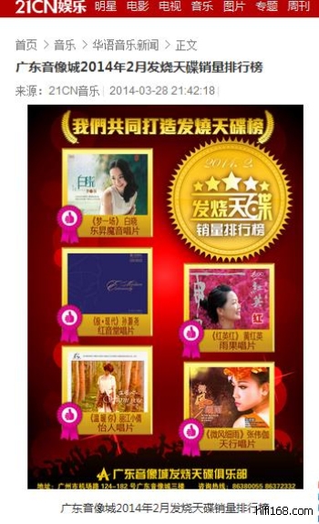 广东音像城2014年2月发烧天碟销量排行榜(媒体播报)