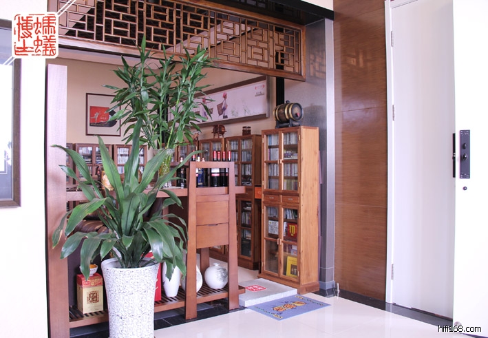 我的办公室面积是将近55平方米,纯粹商业空间,层高在4.2米以上,在装修时我就一分为二,用将近25平米来作为自己发烧听音(大约尺寸:6.8米X3.6米,空间装饰高度2.9米左右),剩下的30平米(空间装饰高度3.2米左右)作自己日常上班工作和发挥创作的空间。听音室弄在办公室,最大好处:器材工作可以发挥到极致,完美服役,随时可以聆听,而且声音想多大就可多大,完全由自己随性控制,简直可以不担心影响别人与否。