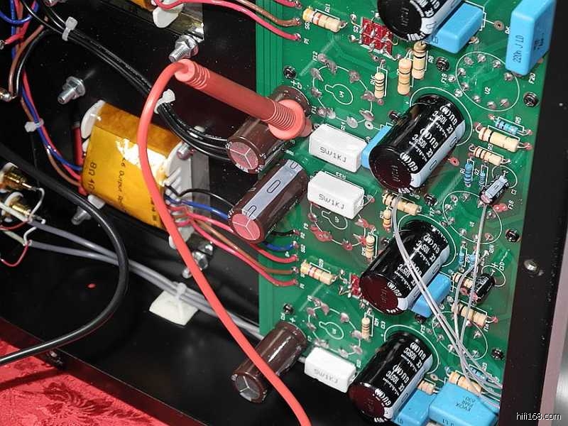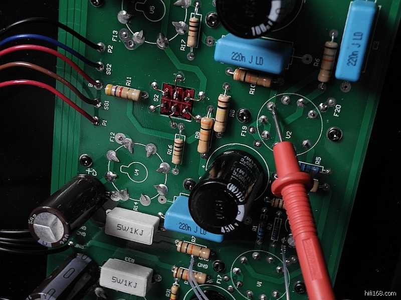 整机虽然为全交流灯丝供电,但由于线路分布排版十分合理,因此即使本人并未采用灯丝交绕连线手法,其信噪比仍然非常之高。将音量旋之最大,耳朵紧贴低、中、高三个喇叭单元,也未耳闻到本底噪声。