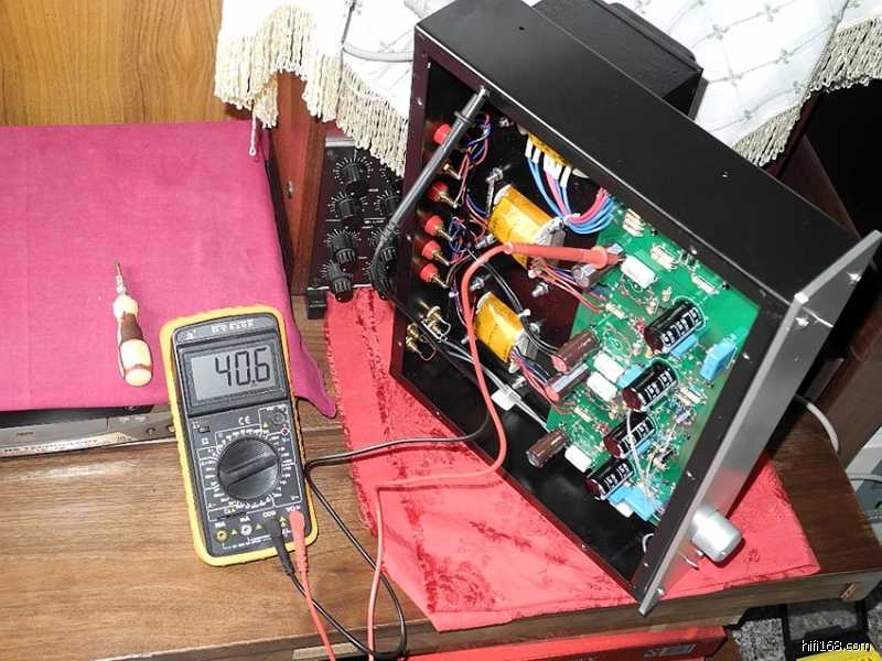 整机的试听,在系统连接之后一次性送电开声正常,从所试听的三张CD唱片外加一盘DAT来看,这台6P3P推挽胆机的声底趋向厚实、淳和的暖声调,和以往制作的单端300B相比在声音表现上明显不同,低频更有力度一些,高频丝丝如扣的光泽感虽不及300B,但中频厚润了不少。由于驱动功率较为强劲,因此聆听电影音乐“悲情城市”一曲,电子合成器演奏的旋律低音及打击乐更富于震憾力。DAT录制的是一盘扬琴独奏曲,6P3P推挽机显然具有某种润色的功效,由此能将击弦乐器表现出来的颗粒音符中和的更加温馨入耳。另,由于整机具备2X25W不失真驱动功率,因此在16平米客厅用来推动一对JBL4312A音箱,音量旋至12点钟刻度时,已能获得足够的声压强度。
