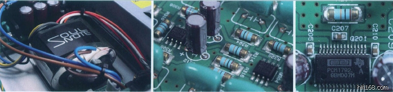 关乎音频性能的DAC芯片采用高级别的美国Burr Brown PCM1792,这款对应24Bit/192kHz精度的芯片动态范围超过132dB,性能卓越,能够对应DSD数码流技术的SACD播放机,常见于售价十万元级的播放机产品。SC 710的模拟放大输出电路采用IC运放完成,每声道由两片NE5532组成低通滤波电路和零负回输信号放大电路,最终提供一组RCA非平衡和一组XLR平衡模拟输出。为了尽可能缩短信号通道路径,SC 710在数码电路和模拟电路上大量采用SMD贴片元件生产,不但能够有效减少信号损耗,更能避免元件引脚引入干扰杂讯,从而大幅提高线路的信噪比。