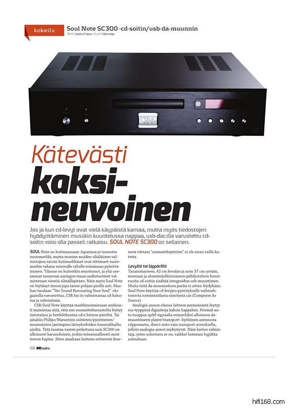 另外,欧洲著名的Hi-Fi杂志《HiFi maailma》也刊登了关于SoulNote器材的评测与报道,图片请见6、7、8三张图片。