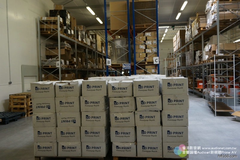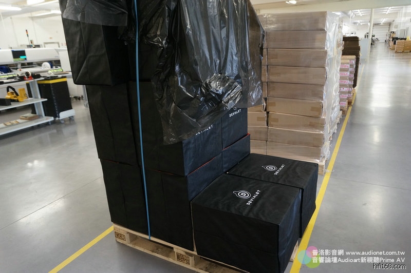 廠長先帶我們去看Devialet的成品,這裡也是發貨中心,巴黎的Devialet會通知廠方,那個地方要多少部,由廠方直接代為發貨。