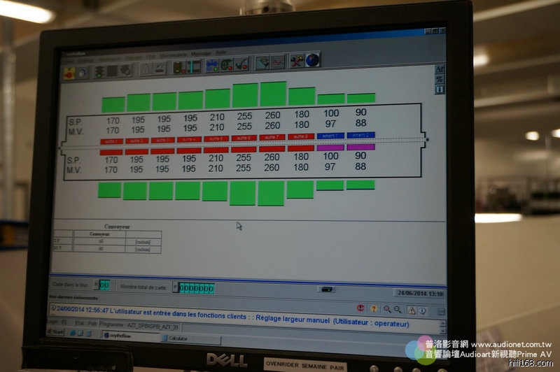 這是什麼?烤箱。廠長說每片Devialet的印刷電路板在上機台印上元件前,都要在前一天放入這個烤箱烤,溫度設定在34度。為什麼要這樣做呢?廠長說這樣在印上焊錫膏時品質會比較均勻。