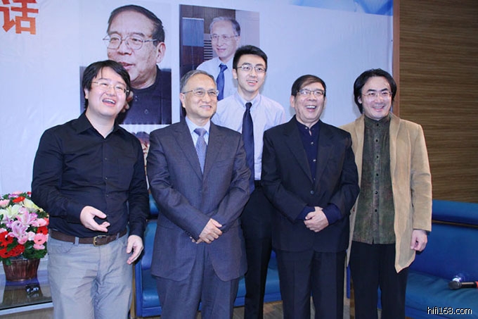 今天,我不知道你们怎么安排的。非常巧,第一工序(指自己),第二工序(指着傅人长)第三工序(刘达)第四工序(刘汉盛),(笑声)当然最后是给大家服务的。这个,就那么几个工序嘛,音乐就是创作演...这还缺个演奏员,哈哈,他就全代替了(指着傅人长)。音乐实际上它是纯三要素嘛就是创作,二位创作演奏然后欣赏。现在欣赏不仅仅是坐在音乐厅里面,我可以这么说,包括我在内,一个专业音乐家在内,我百分之九十的时间就是我接受音乐的状态,还是通过器材,而不是在音乐厅里。没有那么多的时间、机会去欣赏尤其你想听好的乐团演奏你想要的曲目的时候,你除了听唱片你没有别的渠道。比如,我今天想听芝加哥乐团演奏的这个《漂泊的荷兰人》,你们过来演吧。那不可能吧(笑声),把唱片打开。所以我到现在觉得“音乐与音响”这个题目,越来越变成一个大众的题目。