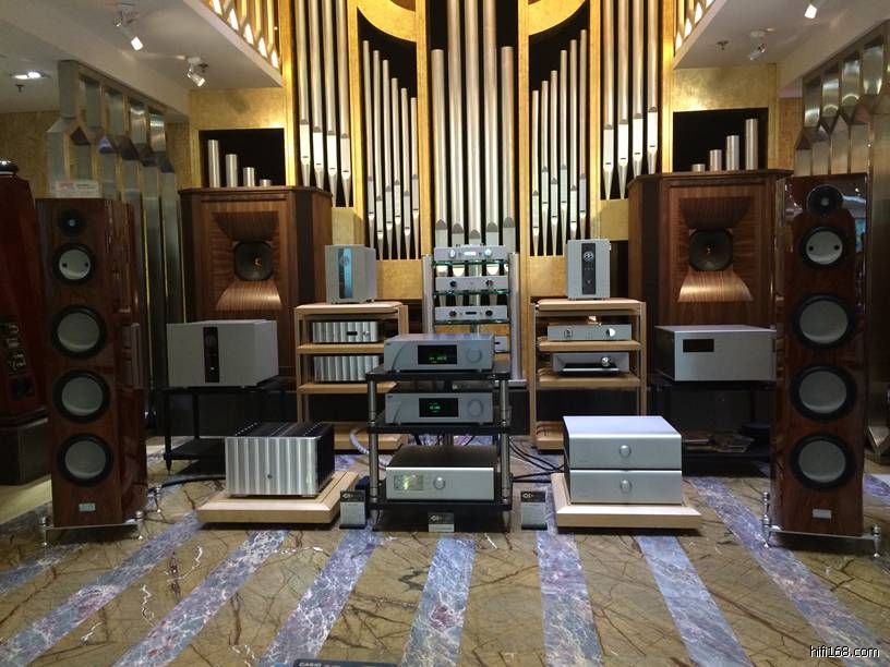 在诺昌4楼听音室我们听到了全套YBA西装搭配mbl小葫芦落地箱的效果,个人认为不太尽如人意。高音过于幼细缺乏韧性,低音的控制力也一般。所以只听了5分钟便离开了。