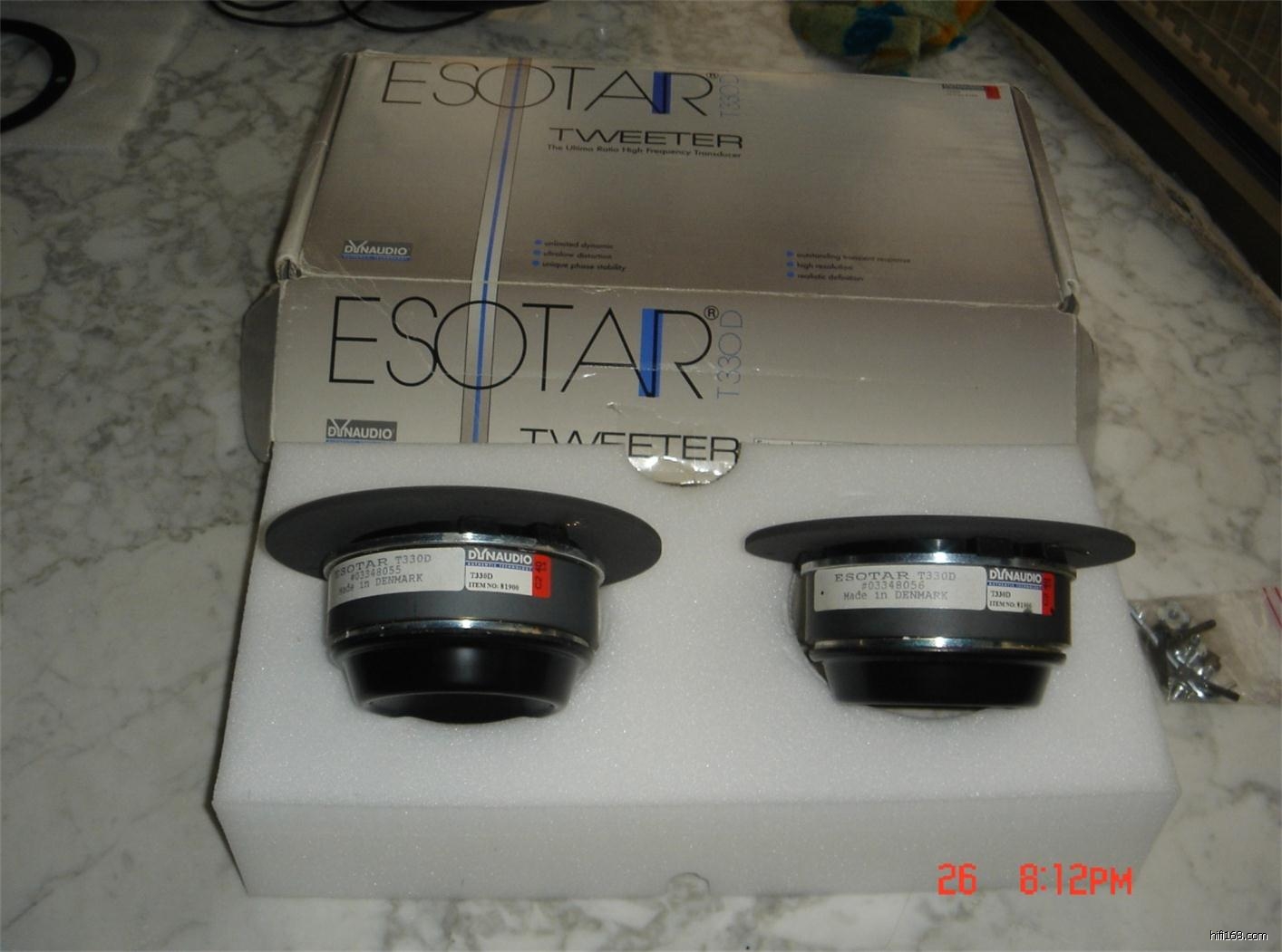 一对丹拿ESOTART- 330D , 全新。原包装盒,原高密度包装泡沫,丹拿原装安装螺母、螺丝,连号。