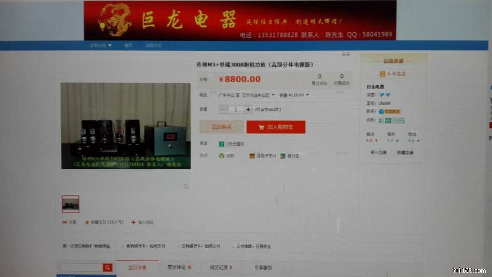谢谢深圳的朋友淘宝购买一台传神M3贺岁版单端300B胆机
