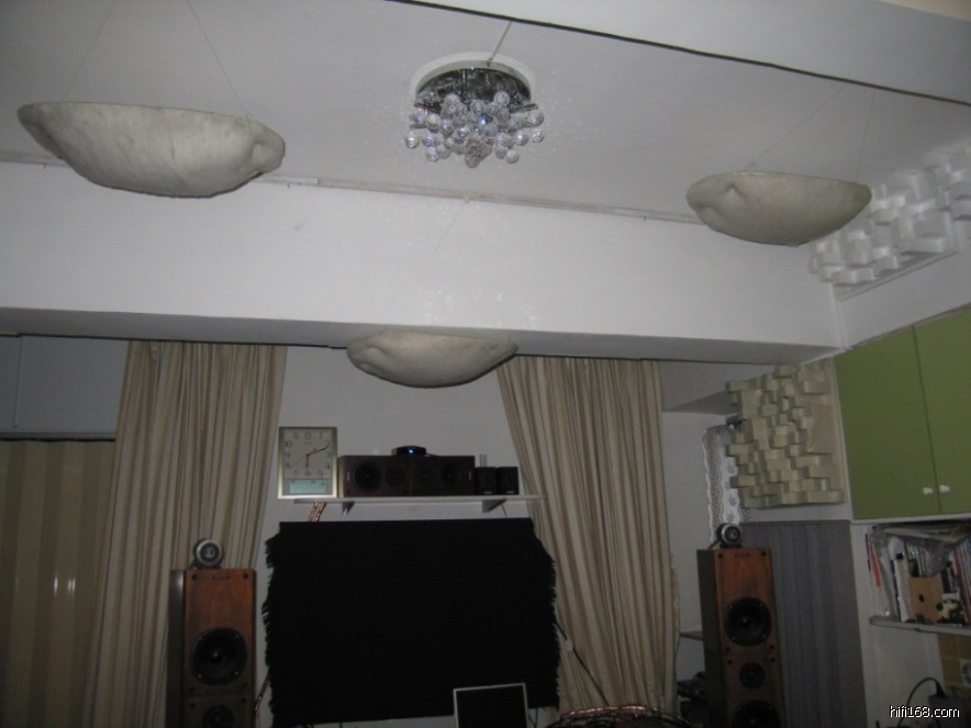 原帖由 cws11104 于 2015-3-7 22:55:00 发表 用到皮草,境界太高了。梁上也有吸音,这是什么材料? | 只是国产山寨的的廉价泡沫散射板而已(数十元一块,再一开二裁成半块使用),在角位和音箱外侧墙特别有效;我有2块原装进口的,香港售千多元一块,从前我用在音箱外侧墙较高位置,现在用不上,和其它闲置的吸音柱、江户工房的吸音云、RPG扩散板一起,存放在车房内。