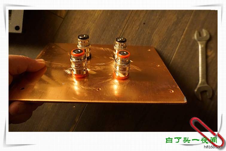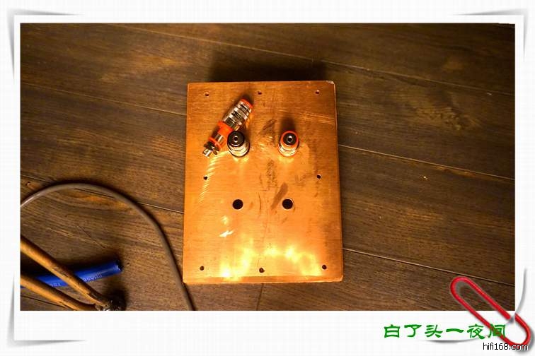 选用了两块20cmX15CM,厚度4mm的纯紫铜板作为新的接线盒!