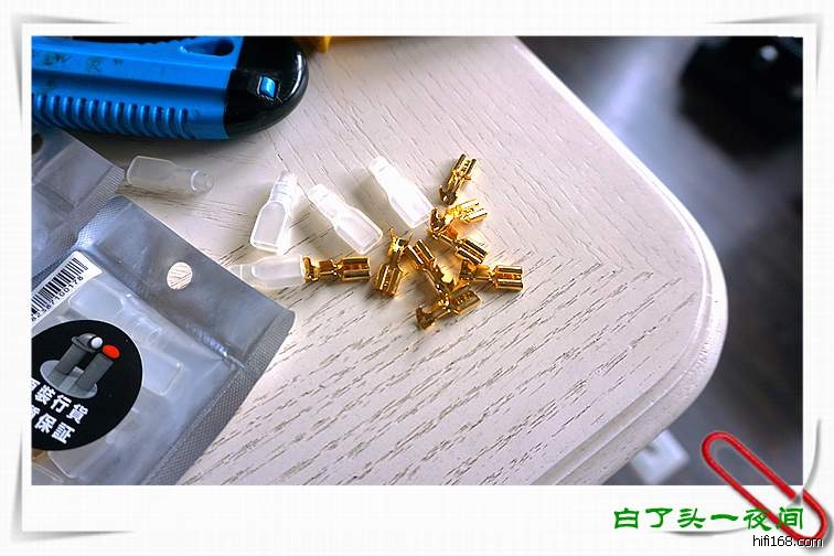 线鼻子选用的是欧亚德的,反正也就是两种,要么古河,要么欧亚德,古河的线径偏大了,不合适,回来后发现这个还是比音箱里面原来的大一点点,好在经过简单的处理,用起来完全没有问题!