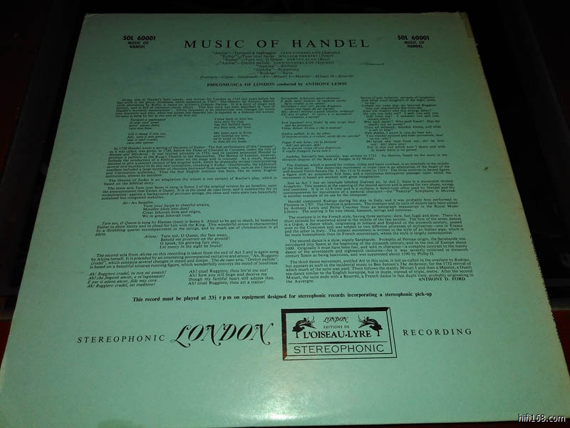 Music of handel,英国版,大伦敦立体声蓝背,封套NM-,碟片NM-,90元