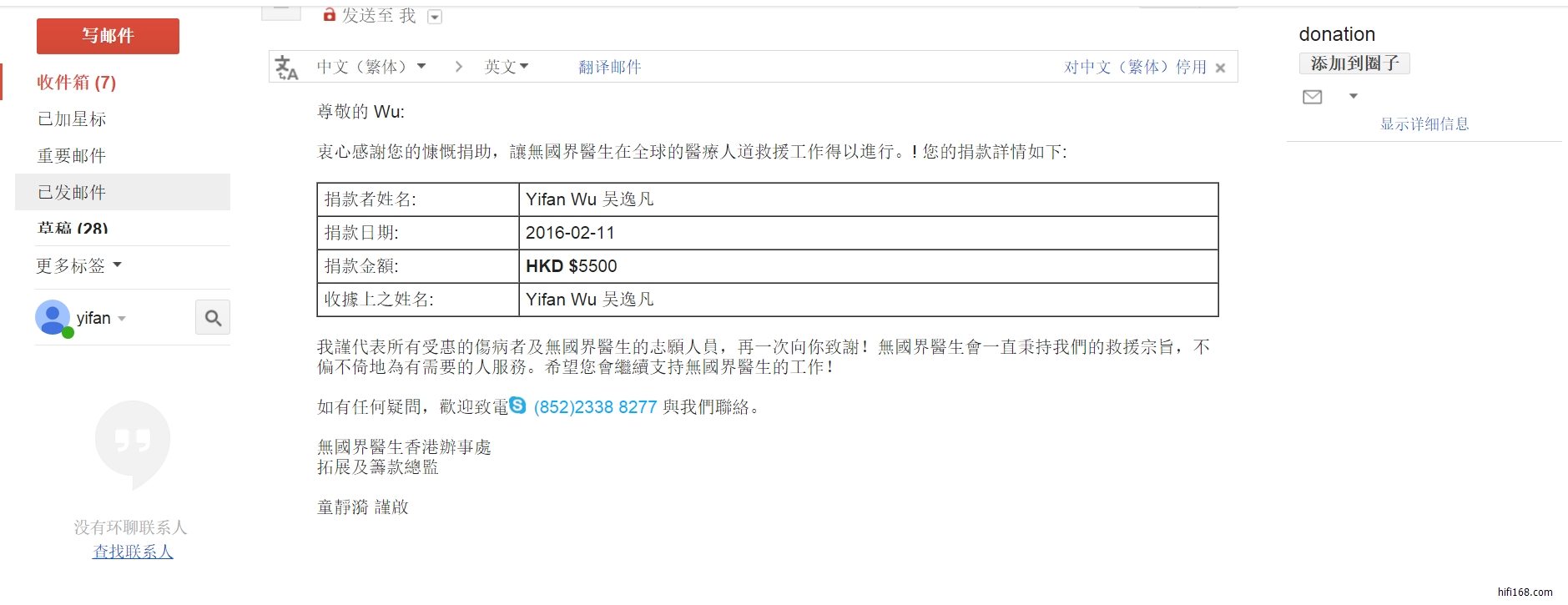 另款以捐完,中国大陆没有无国界医生是通过香港的无国界医生网站捐的,可以用淘宝,不过货币会转换为港币。请看凭证