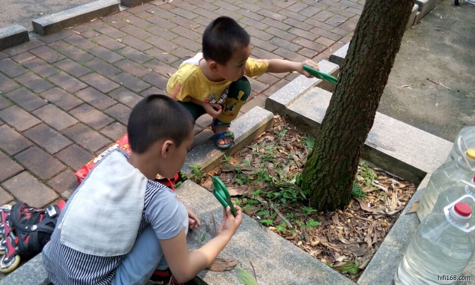 小家伙们在研究蚂蚁。
