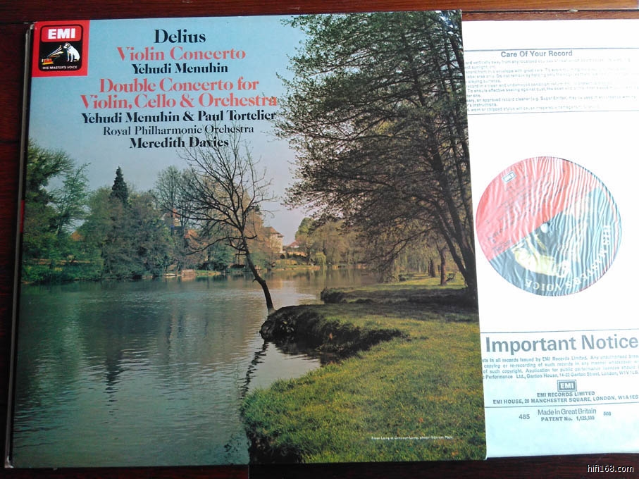 戴留斯小提琴协奏曲,梅纽因,英国版,封套NM,碟片NM,140元